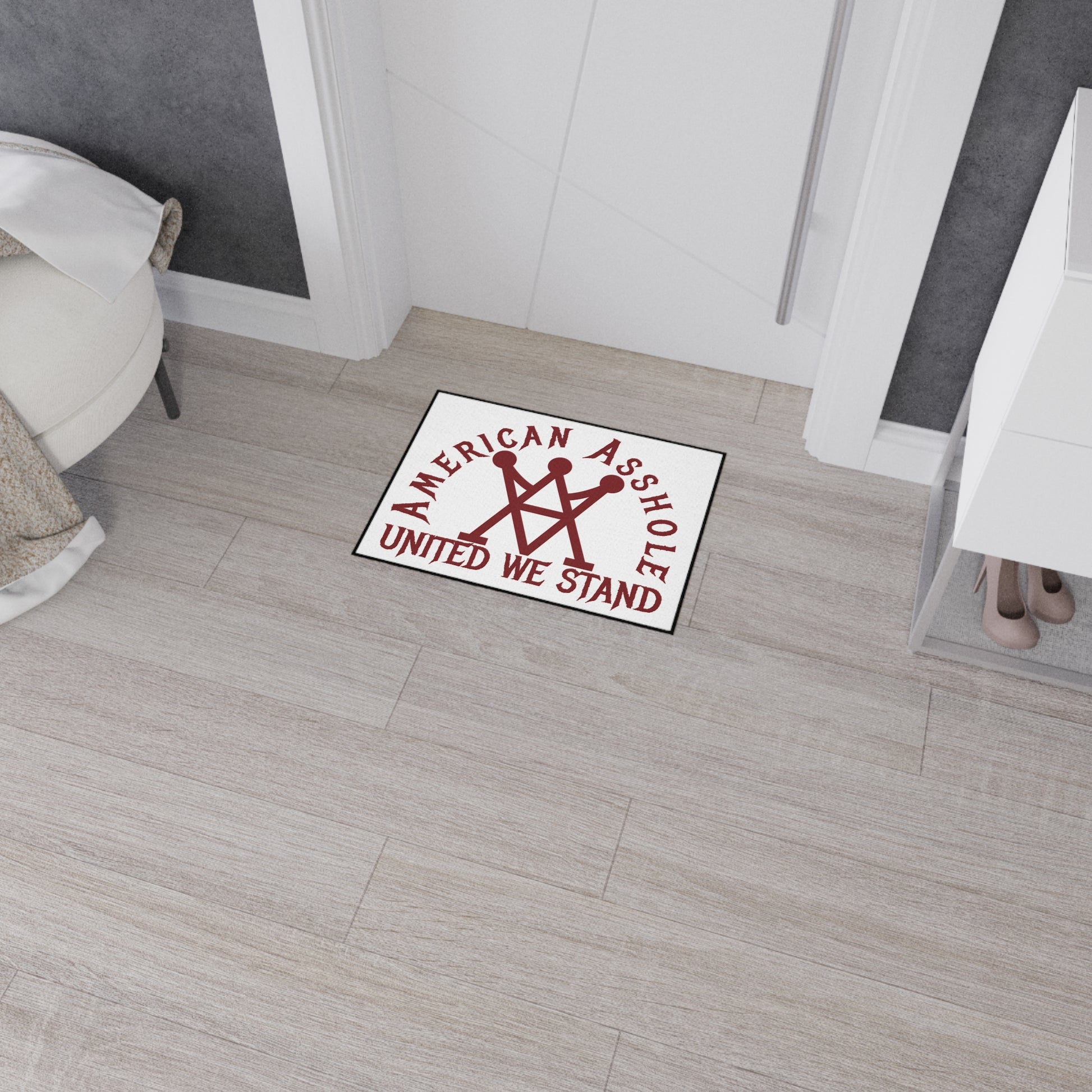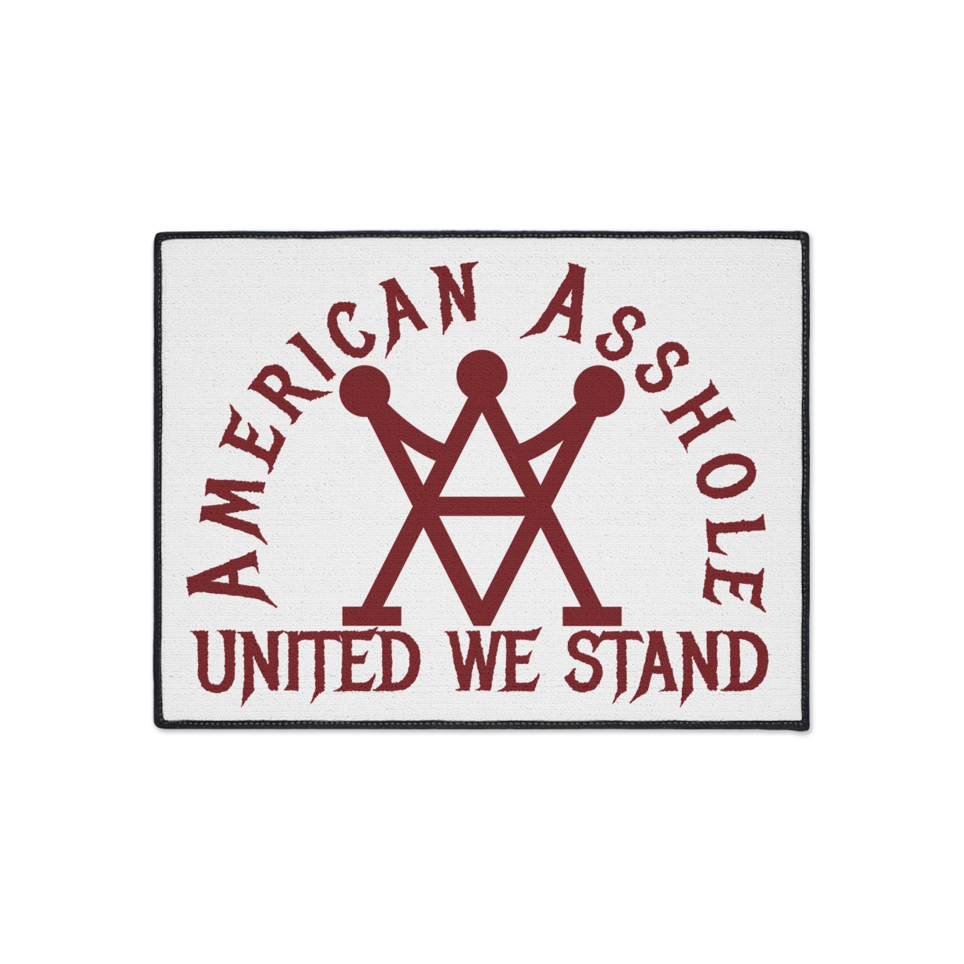 Add American Asshole fire to your entryway or shower step with this heavy-duty custom floor mat – tough, no-slip, and ready to greet guests with a middle finger to mediocrity. Your design blasts edge-to-edge in vivid print on 100% polyester, with black trim for that clean, unapologetic edge. Rubber backing grips like a vice, keeping it planted. One-sided print, assembled in the USA from global parts. No fluff, just durable American attitude that lasts.