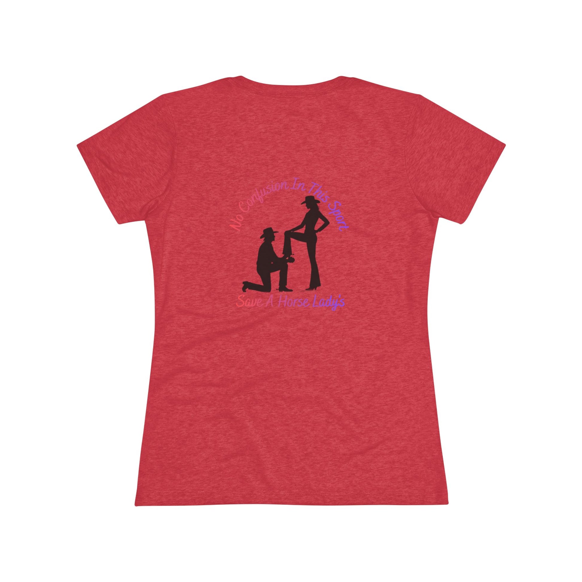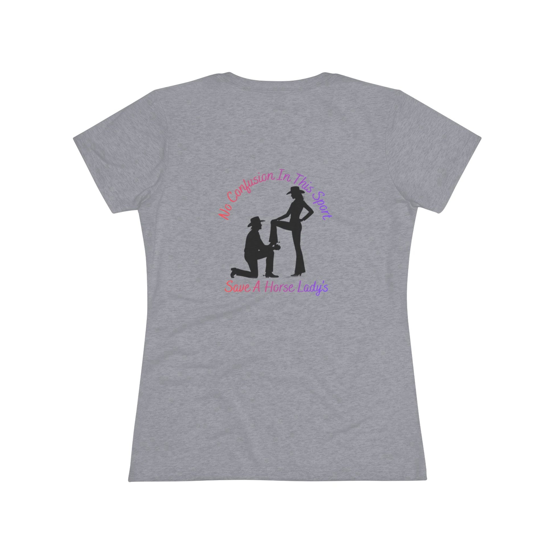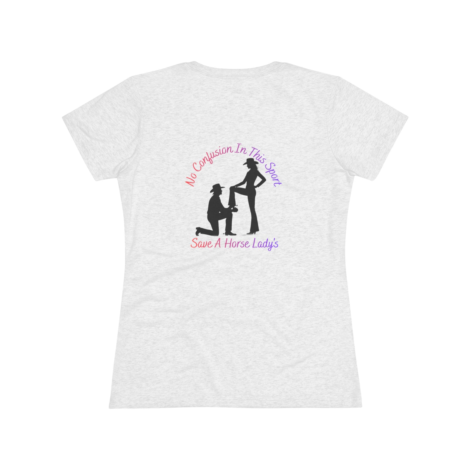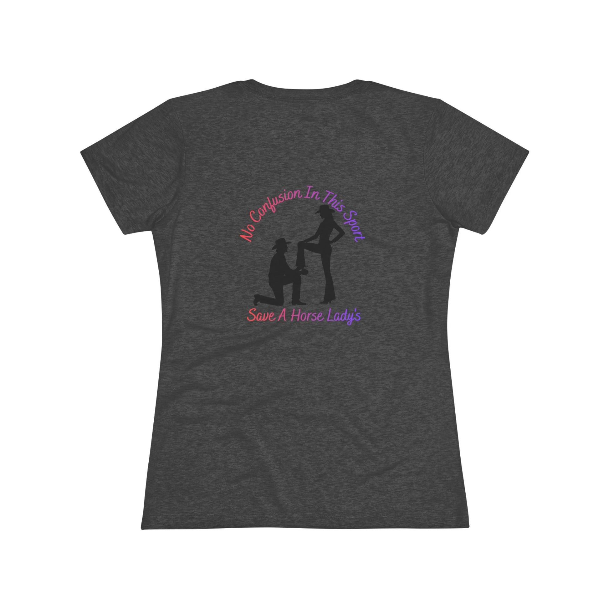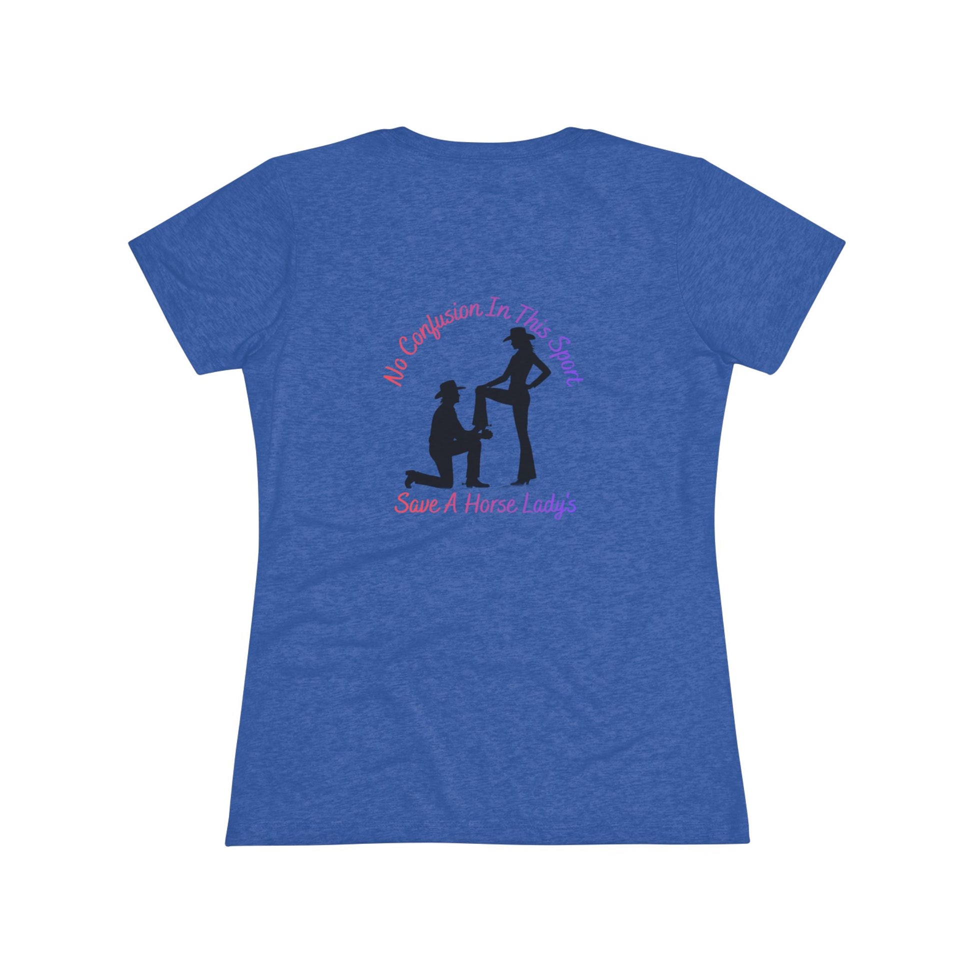 This slim-fit triblend tee carries the quiet confidence of women who run the ranch and own the arena. Soft, drapey fabric moves with you—whether you’re tacking up at dawn, leading a lesson, or heading to the ring. The short sentences here are the ones you’ll whisper between chores and warm-ups: steady, strong, and a little defiant. Wear it with worn jeans after a sunset ride, layer it under a vest at a clinic, or pull it on for a Sunday herd check. The wording on this shirt is a declaration—women in control, comfortable in their work, and proud of the life they live.